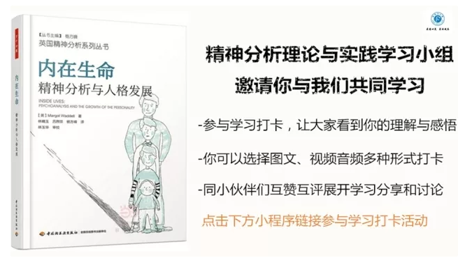 学习书目:《内在生命:精神分析与人格发展》。本书取材自精神分析的圣地 —— 英国塔维斯托克临床中心(Tavistock Clinic)。竭力以最简单的文字,叙述最复杂的“故事”——一个人从婴儿到老年的内在生命发展故事。带你亲近精神分析取向的思维,将精神分析理论带进生活之中。